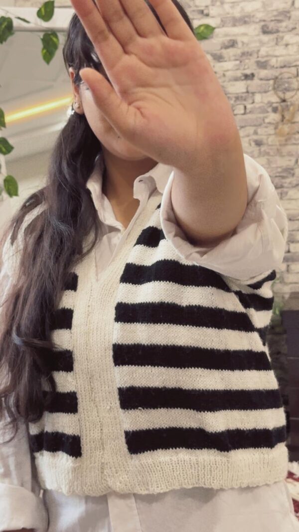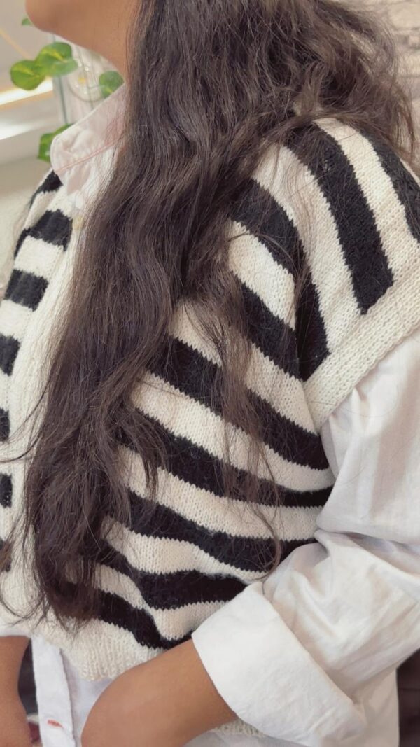 Cropped Black & White V-Neck Sleeveless Knitted Vest
