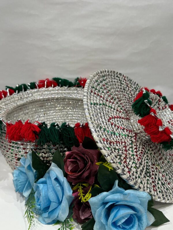 Handmade Square Roti Holder with Glitter Strips & Tassels